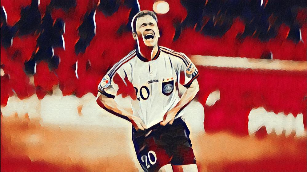 Die zündet dann bekanntlich umso mehr: mit einem typgerechten Kopfballtreffer und dem ersten Golden Goal der Geschichte gewinnt er Deutschland den Europameistertitel.
