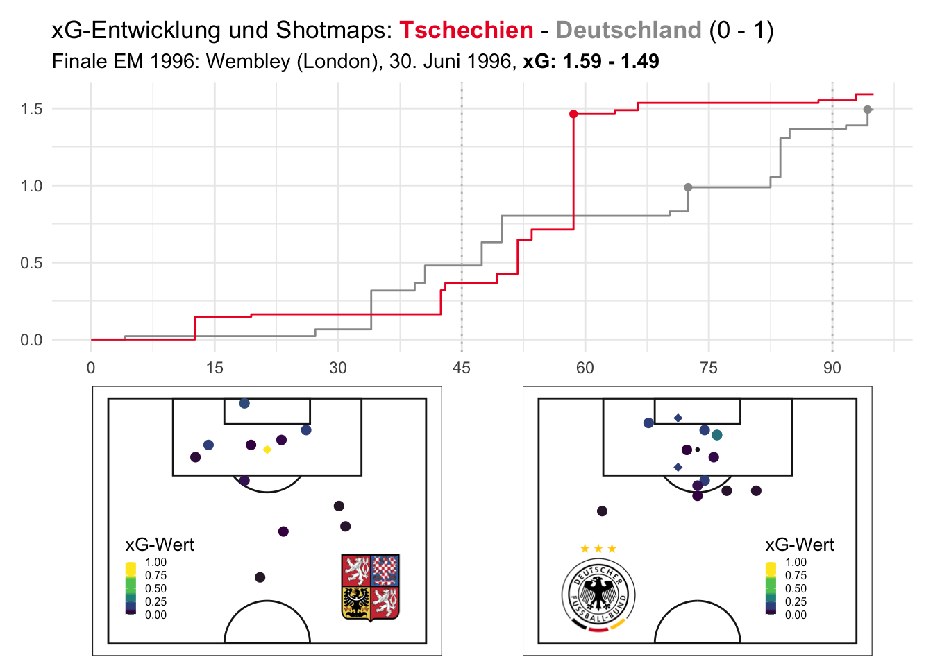 Nun analysieren wir einige Klassiker der deutschen Fußballgeschichte durch die expected Goals-Lupe und der Hilfe von xG-Timelines und Shotmaps.